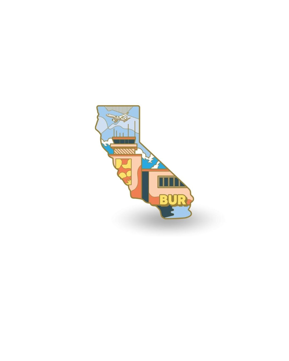 Our Airport Pins are crafted in gold metal and inspired by real airports around the world. Each pin takes the shape of the state or country where the airport is located and features authentic architectural elements such as control towers, terminals, or runways, along with the airport code.